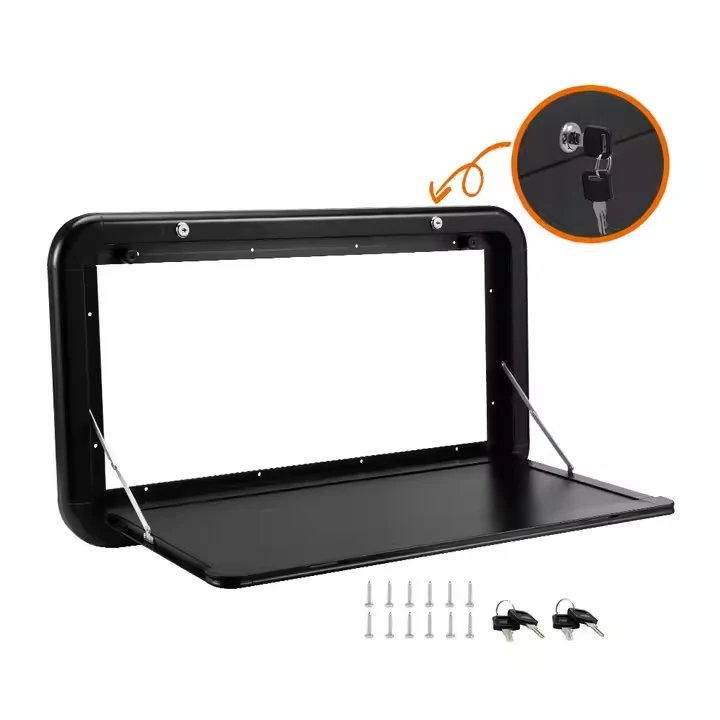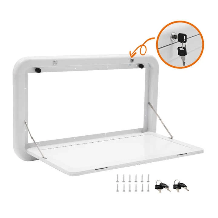 Düşərgə karvanı Wall-Mount qatlanan masa, nəqliyyat vasitələri üçün mükəmməldir Caravan Camper, Van, Motorhome, RV, Bahçe, Mətbəx ect. Açıq əşyalar yerləşdirə və ya iş çubuğu kimi istifadə edə bilər. Qatlanmış, yer qənaət edərkən mükəmməl gizlidir.