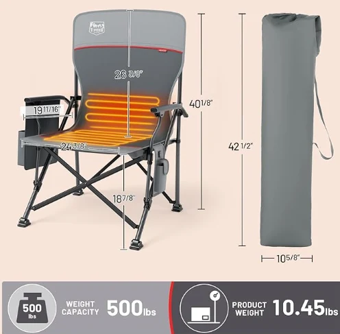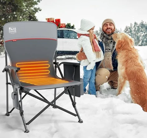 Xüsusi qızdırılan qatlanan kreslo. İsti və aşağı templərdə, hətta rahat və aşağı templərdə, istilik və belinə və kalçalara köçürən istilik zonalarında rahatdır. Sərin hava şəraitində uzadılmış açıq fəaliyyətlər üçün idealdır.