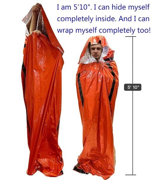Təcili Yaşamaq Yuxu çantası, bütün fəsillərdə və bütün hallarda yaşamaq şansınızı artıra bilər. Kosmik kəşfiyyat üçün NASA tərəfindən hazırlanan davamlı izolyasiya edən Mylar materialından hazırlanmışdır. Bədən istiliyinin 90% -ni saxlayır / əks etdirir. Yenidən istifadə edilə bilər, suya davamlı və külək keçiricisidir.