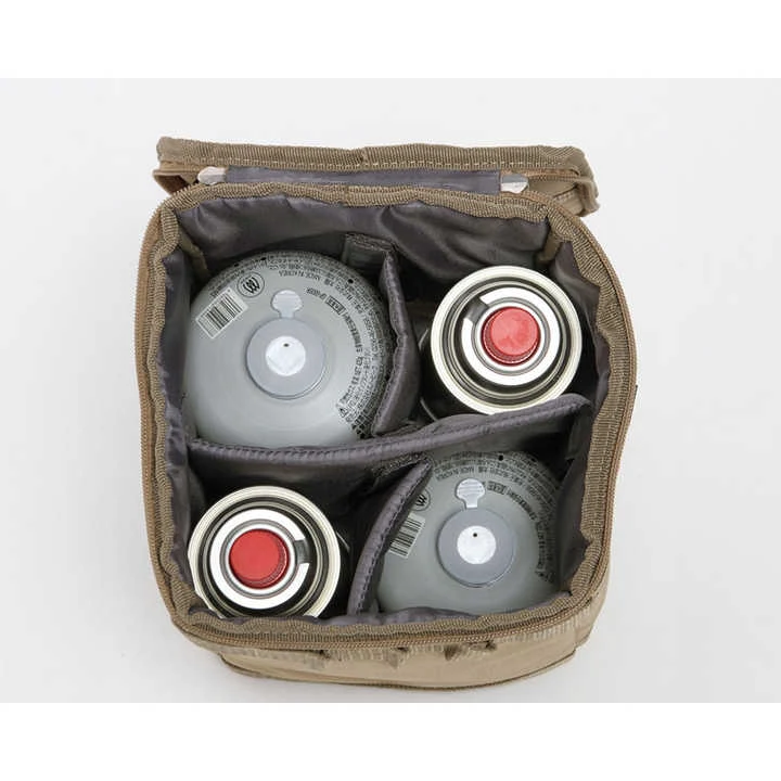 Qaz sobası Canister Pot çantası, digər oxşar ölçülü içməli butan yanacaq kanistatorları. Daxili bölücü çıxarıldıqda digər düşərgə aksesuarları üçün də istifadə edilə bilər