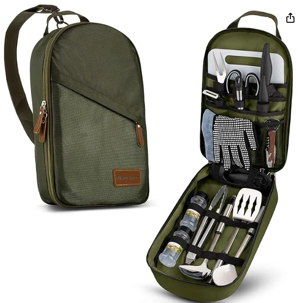 Portativ açıq düşərgə alət çantası, hər bir qaba öz təyin olunmuş çantası var, buna görə də bölmələr, anbarda və ya tranzitdə cızıqlanmış və ya zədələnməmiş, cızılmamış və ya zədələnmir. Yemək qablarınıza asanlıqla daxil olmağı təmin edir və etibarlı bir zip möhürü ilə təchiz edilmişdir